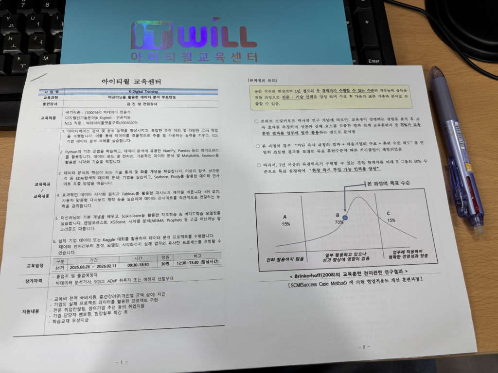 아이티윌 부트캠프를 수료하고 나서야 비로소 데이터를 다루는 전체적인 그림이 머릿속에 그려졌고, 실무에서 바로 활용할 수 있는 기술 스택을 체계적으로 갖추게 되었습니다.